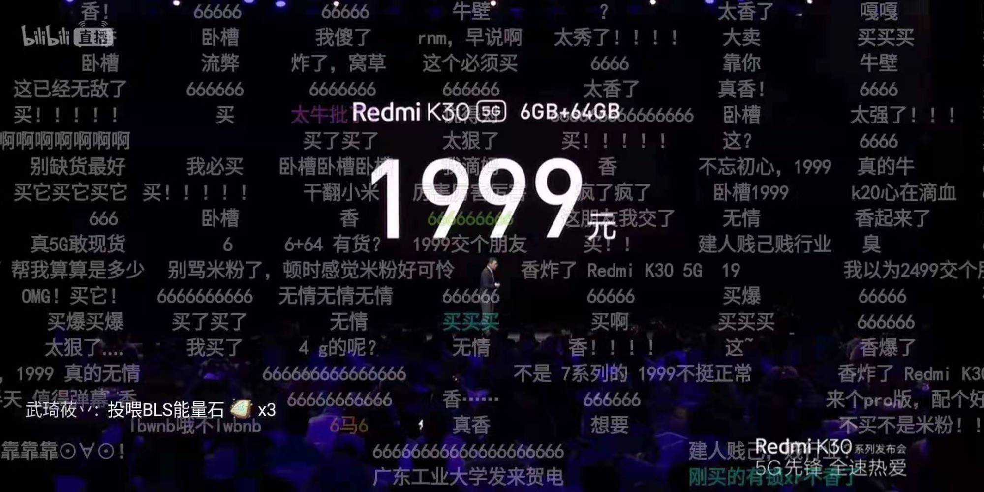 当卢伟冰介绍完Redmi K30 5G版的配置、参数、拍照、屏幕、电池等等信息后,万众瞩目的公布价格环节到了!基于前面满满的铺垫,无论是配置还是性能、无论是颜值还是体验,显然都令人满意,甚至有不少惊喜,所以,所有人都觉得,尽管小米尤其是Redmi一贯以“低价”感动人心,但Redmi K30 5G版的价格起码也得接近3000元吧?2999?