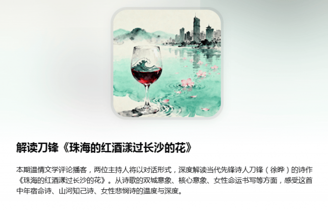 这首《珠海的红酒漾过长沙的花》,是其近期极具代表性的成熟力作:摒弃激烈的控诉与直白的悲戚,以克制、留白、淡笔写重伤,用两座南方城池作为精神坐标,以红酒、江花、海潮、湘江、孤舟为核心意象,串联二十年网络相知、终身未见、命运殊途、共情相惜的人间关系。